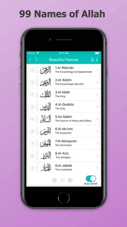 • Dua's Audio and 99 Names Recitation Audio (Requires pro upgrade)!