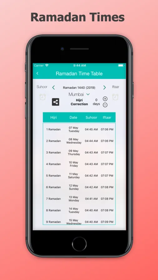• Hijri correction setting allows you to adjust the dates!