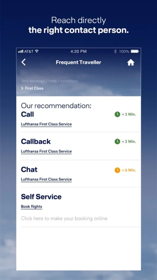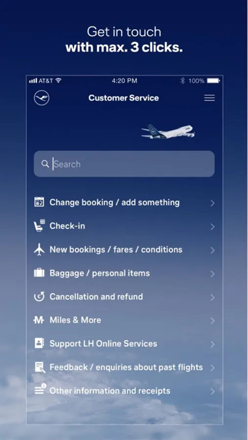 Get in touch with the right contact by using the Lufthansa Customer Service App. No