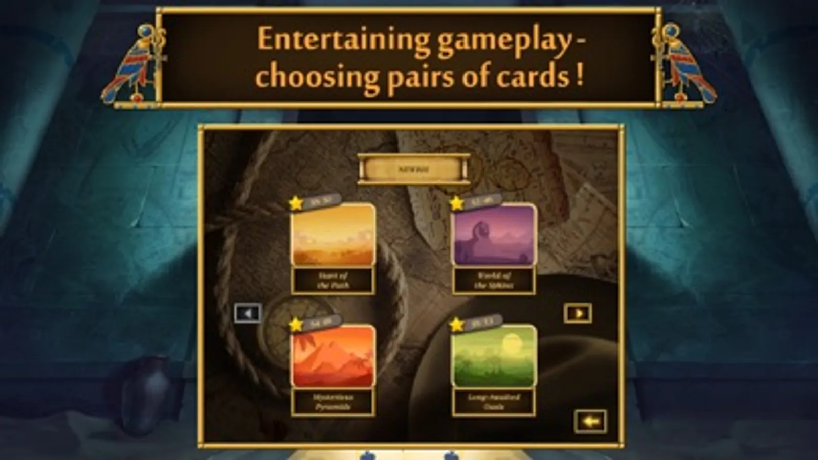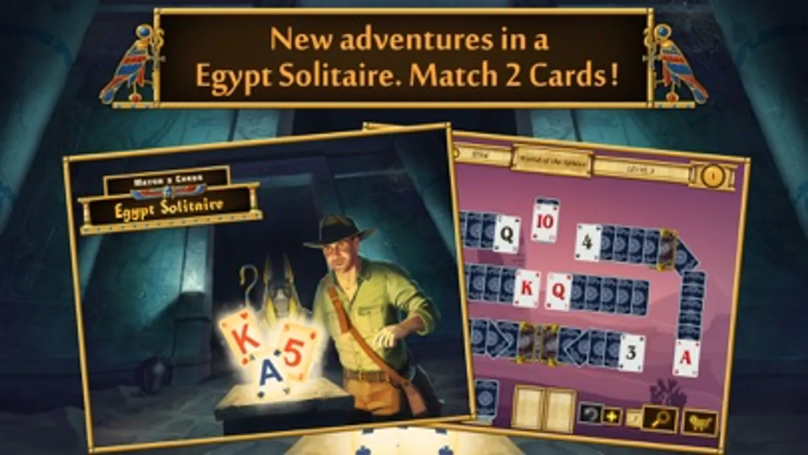 Egypt Solitaire. Match 2 Cards isn't just a card game, it’s a real journey! 120 unique card deals in a mysterious Egyptian atmosphere to help you immerse yourself in a story of ancient times!