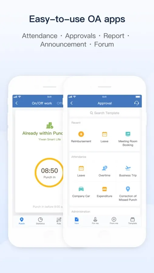 [OA Apps] Preset tools, such as Attendance, Reports, Announcement, Meeting and Forum.