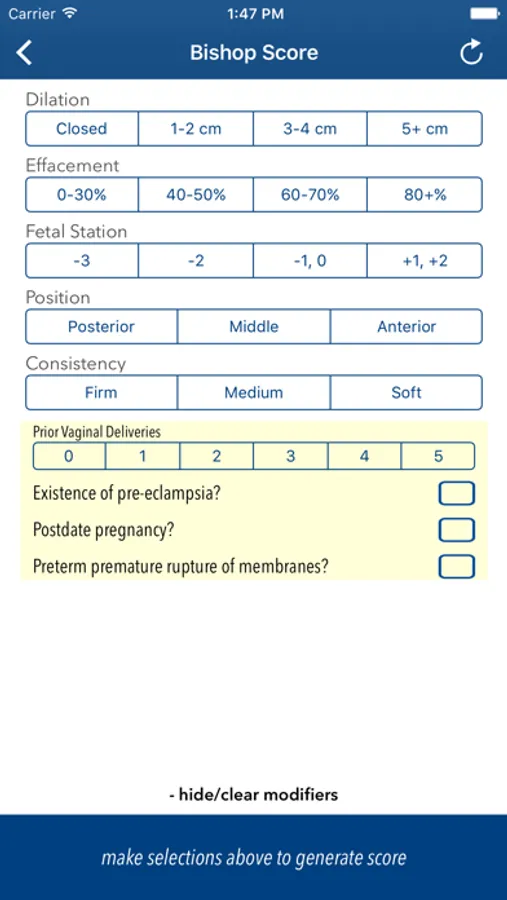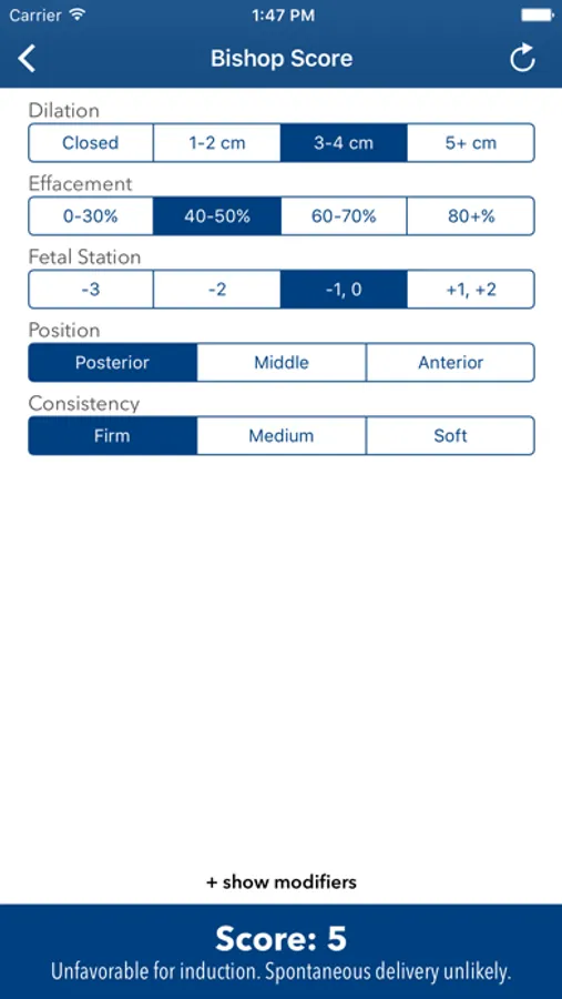 The Bishop Score is a medical calculator designed for physicians, nurses, midwives, medical residents, students and other medical professionals.