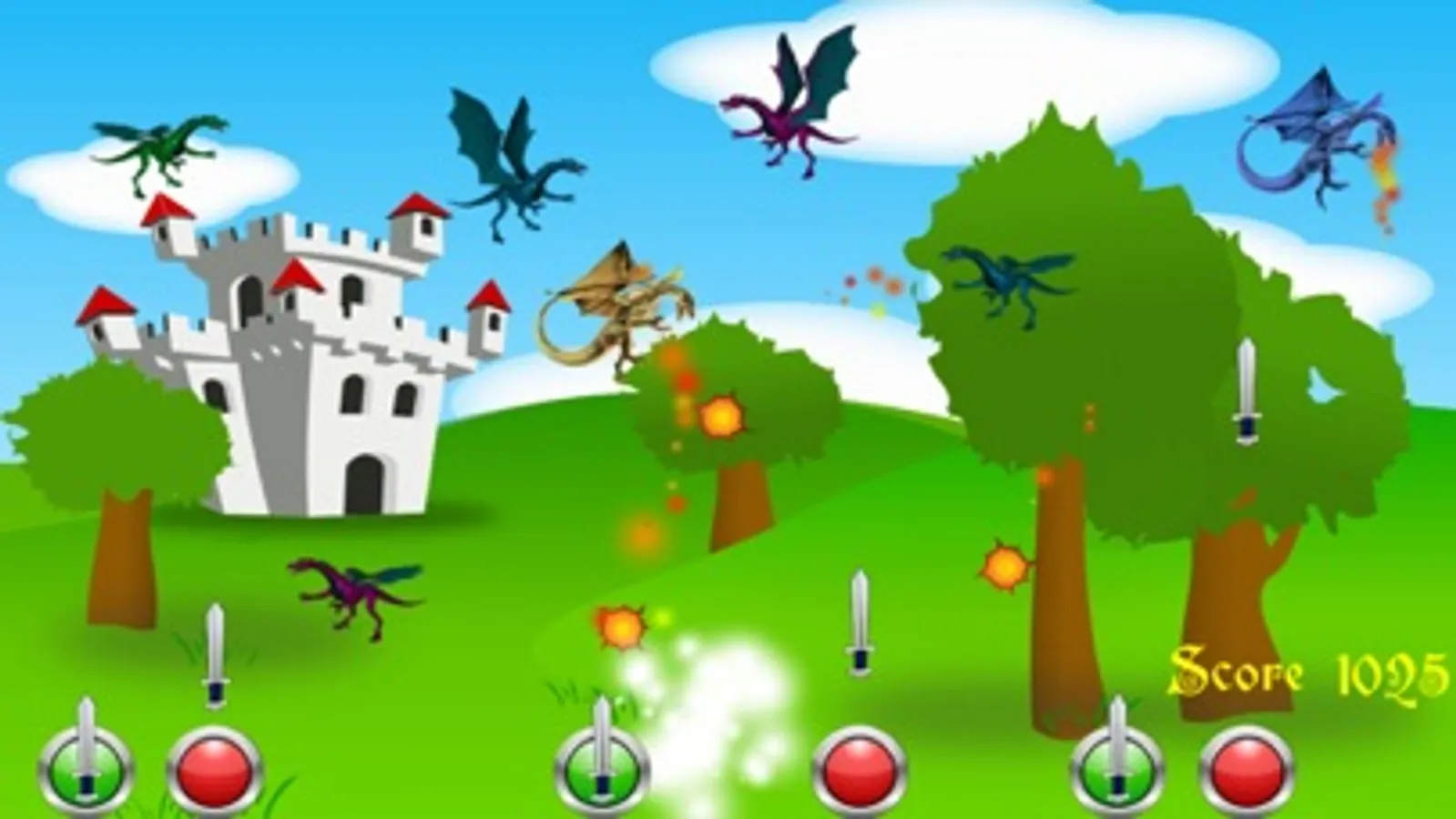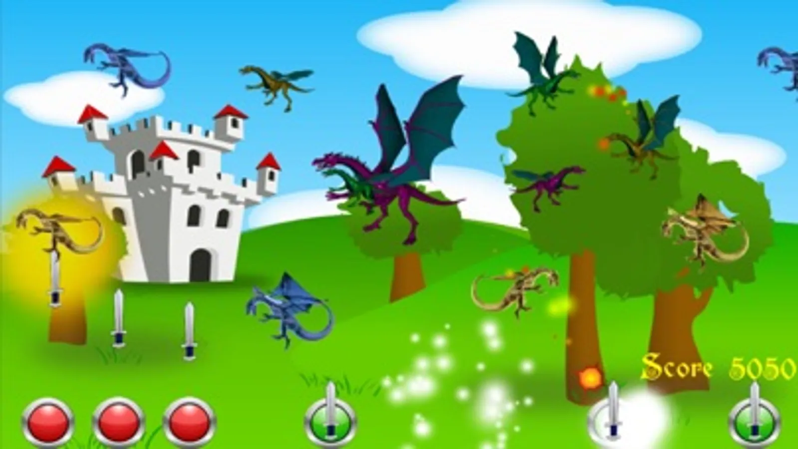 You control the shields and swords at the bottom of the screen, click a sword to fling it at the dragons to score big points. Dragons are reincarnated on each new level like a phoenix from the flames, they get tougher and bigger and more prevalent.