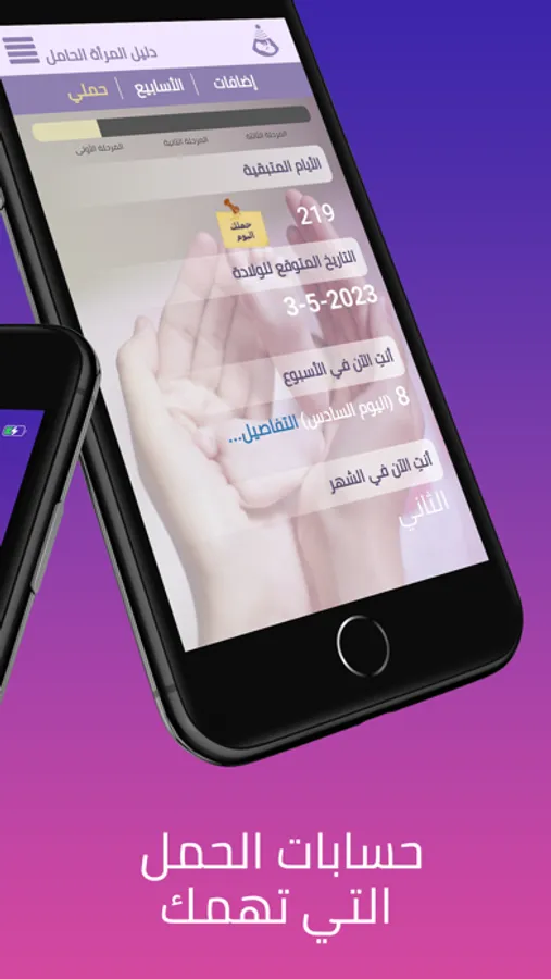 تطبيق دليل المرأة الحامل هو برنامج حاسبة الحمل و الولادة الاكثر انتشارا، هو رفيقك خلال رحلة الحمل إن شاء الله مع نصائح و إرشادات الحمل اليومية والمعلومات الأسبوعية المتعلقة بطفلك و جسمك كامرأة حامل.