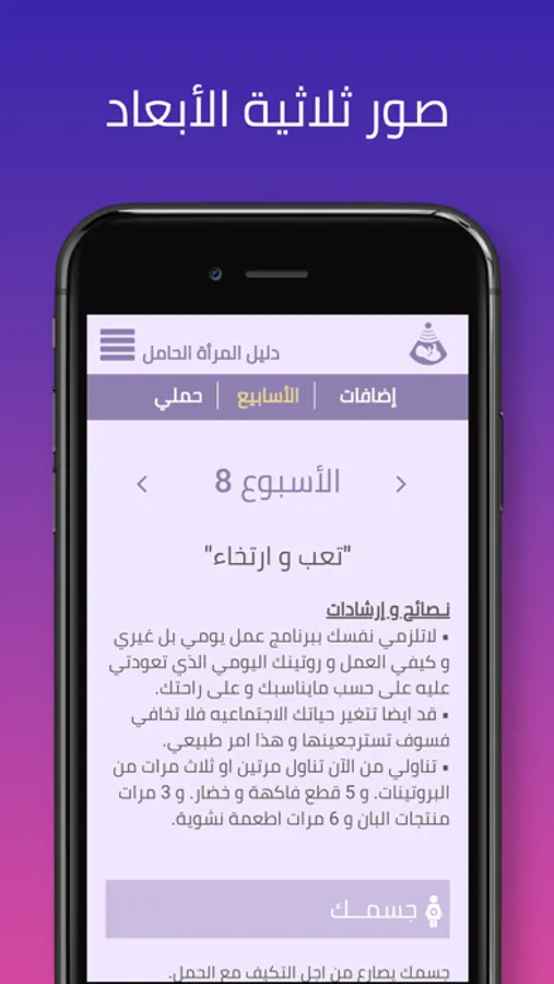• نعرض نصائح يومية ونذكرك كل يوم بقراءة هذه النصيحة او المعلومة لمتابعه الحمل يوم بيوم.