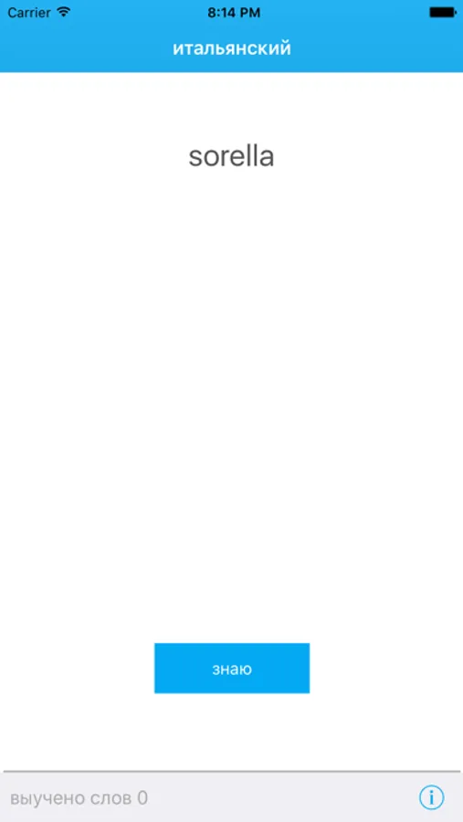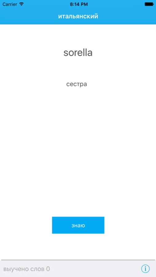 И если вы сможете правильно перевести его на итальянский, нажмите кнопку "Знаю", и это слово больше не появится.