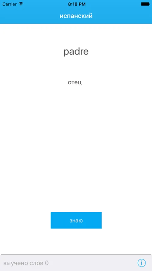 И если вы сможете правильно перевести его на испанский, нажмите кнопку "Знаю", и это слово больше не появится.