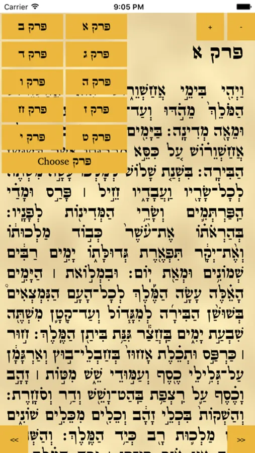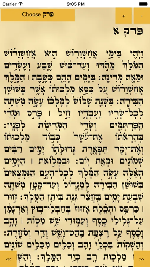 • Change the Perek using the next and previous buttons or use the "Choose Perek" drop-down menu.
