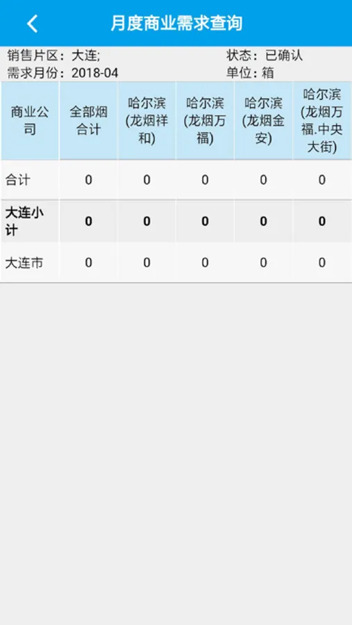 黑龙江烟草工业有限责任公司营销模块移动应用。该应用用于黑龙江烟草责任有限公司营销部门工作人员的日常工作,帮助他们更好的完成日常工作。通过该应用,营销部门业务员可以进行营销需求上报,营销报表查询,个人工资查询及与部门其他人员进行信息交互。