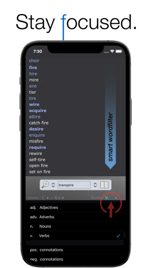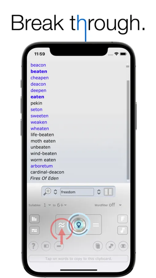 Find suitable rhymes more efficiently with Rhyme Genie’s wordfilter featuring 130,000 parts of speech. Limit search results to words or phrases with positive or negative connotations and a specific number of syllables. Express yourself effortlessly with an integrated thesaurus with 2.5 million entries ‑ capable of finding syllable matching synonyms.