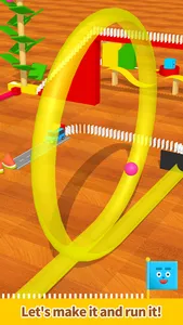 In this marble run creation app, users trace the screen to generate paths and assemble device sequences that activate marbles. Includes features like device swapping, background music control, and shadow toggling for customization.