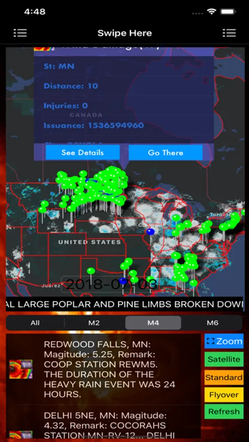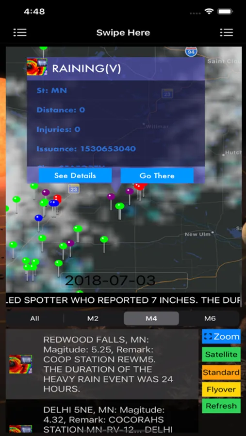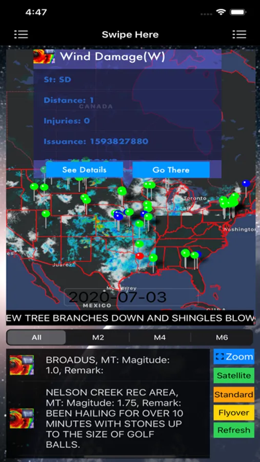 > US Storms are listed on the map. Zoom in/out and select any city to see the Storm information. Storms information will be refreshed every 10 minutes to provide you the up-to-date information.