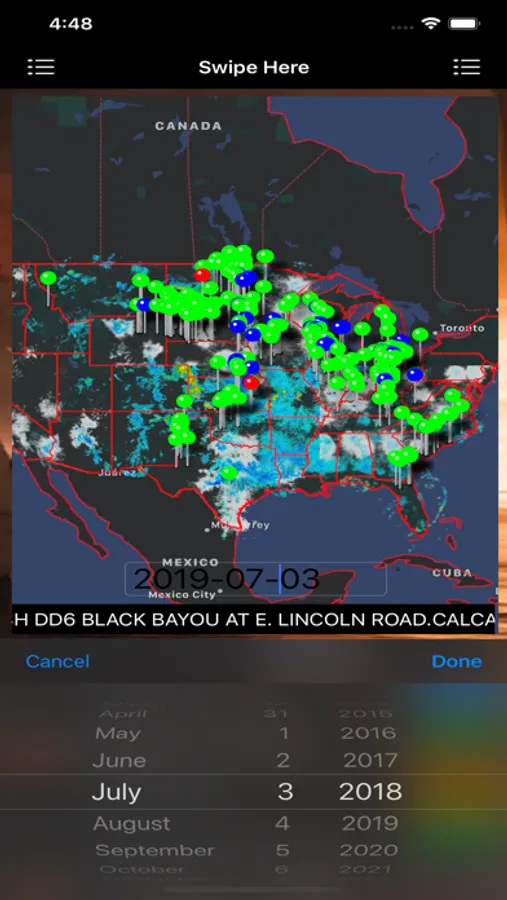 > US NOAA Radar images will be loaded when the app is launched and will be refreshed every 10 minutes. And you are ready to see the latest real time radar images on the map. Zoom in and out to see the whether across multiple states. Click on the "Radar" button to enable/disable radar images. Slide the slider to change the transparency of radar images.