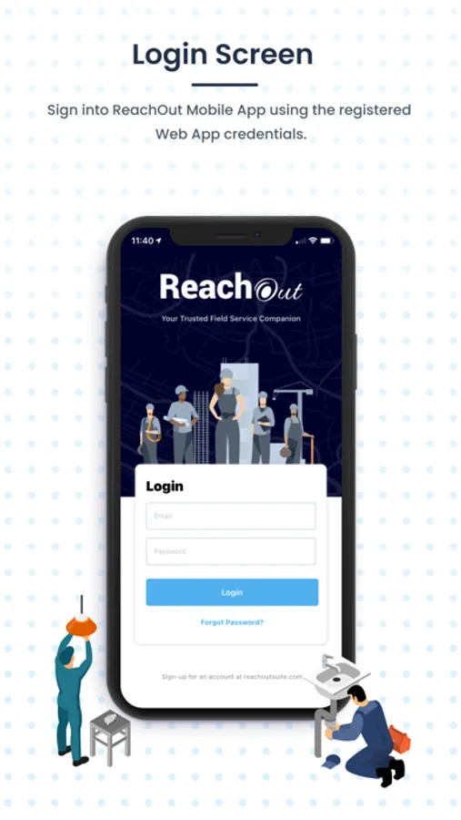 The ReachOut app simplifies these on-site activities with a seamless and intuitive user experience for:
