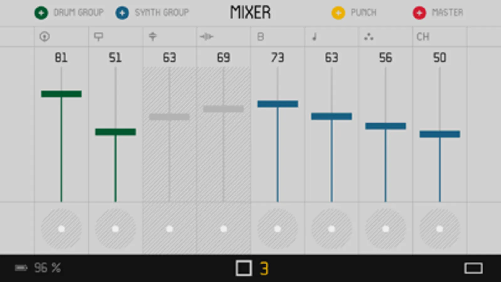 The app adds another dimension to your interaction with the OP–Z. Unlocking multi-touch features, you can adjust multiple mixer sliders at once or use the smooth touch pad to adjust effects or filters.