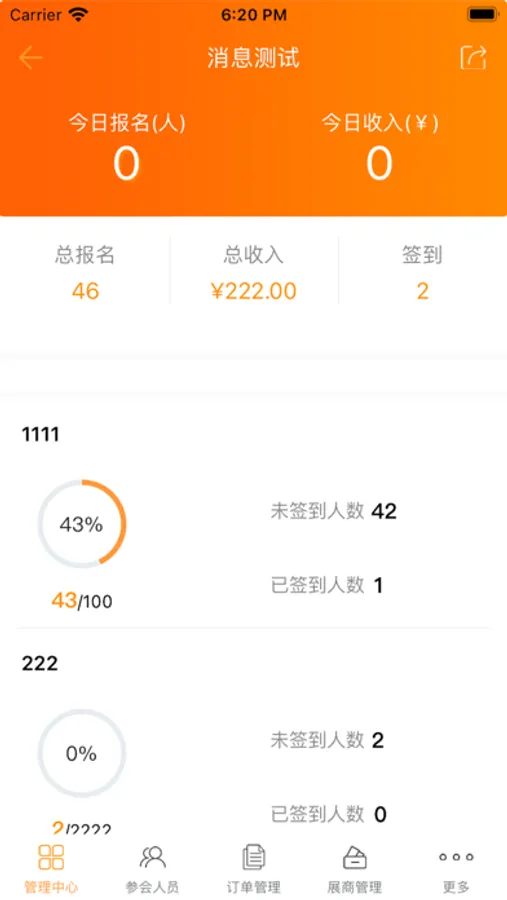 支持二维码扫描签到、手机尾号后四位签到、搜索参会者信息签到