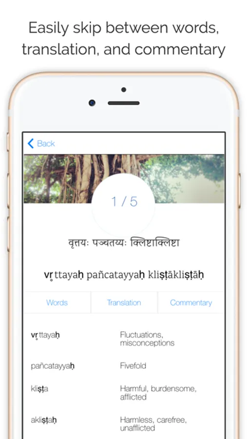 The Yoga Sutras by Patanjali is an incredible resource for anyone interested in Yoga. This app is a swiss army knife study guide complete with a searchable sanskrit dictionary, and audio chanting of every verse.