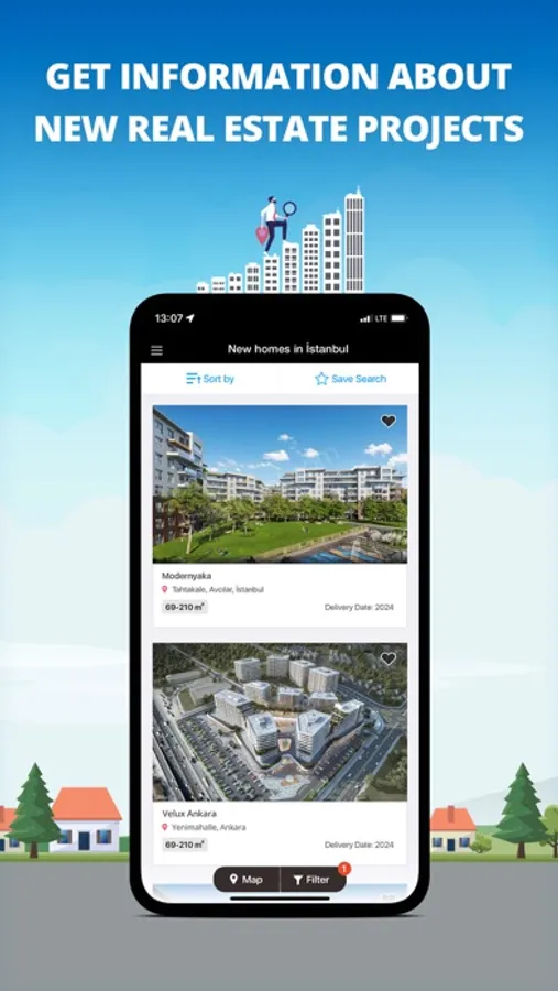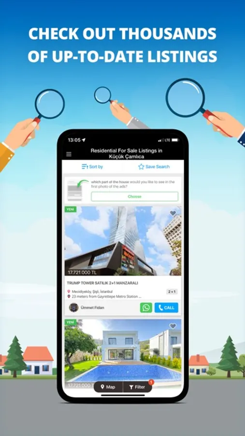 You can easily access up-to-date real estate for sale or rent apartments, stores, residences, detached houses, villas, lands, and much more through our application.