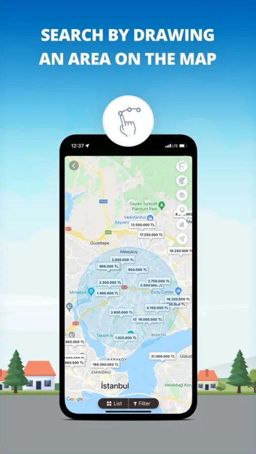 2) With the detailed filtering feature, you can filter the listings according to many features such as category, location, price, square meter, number of rooms, building age, number of floors.