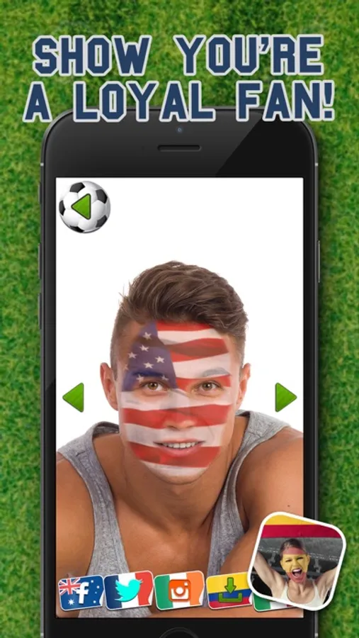 Show some support for your top soccer team and cheer for them with the help of our insta camera editor app that turns you into the most faithful football fan in no time. It's so fun and effortless! Enjoy applying all the flag filters to your selfies and have stunning pics in vibrant colors. What are you still waiting for? Are you a true soccer fan or not? Download Football Fans Flag Face app and spice up your profile avatar completely free now!