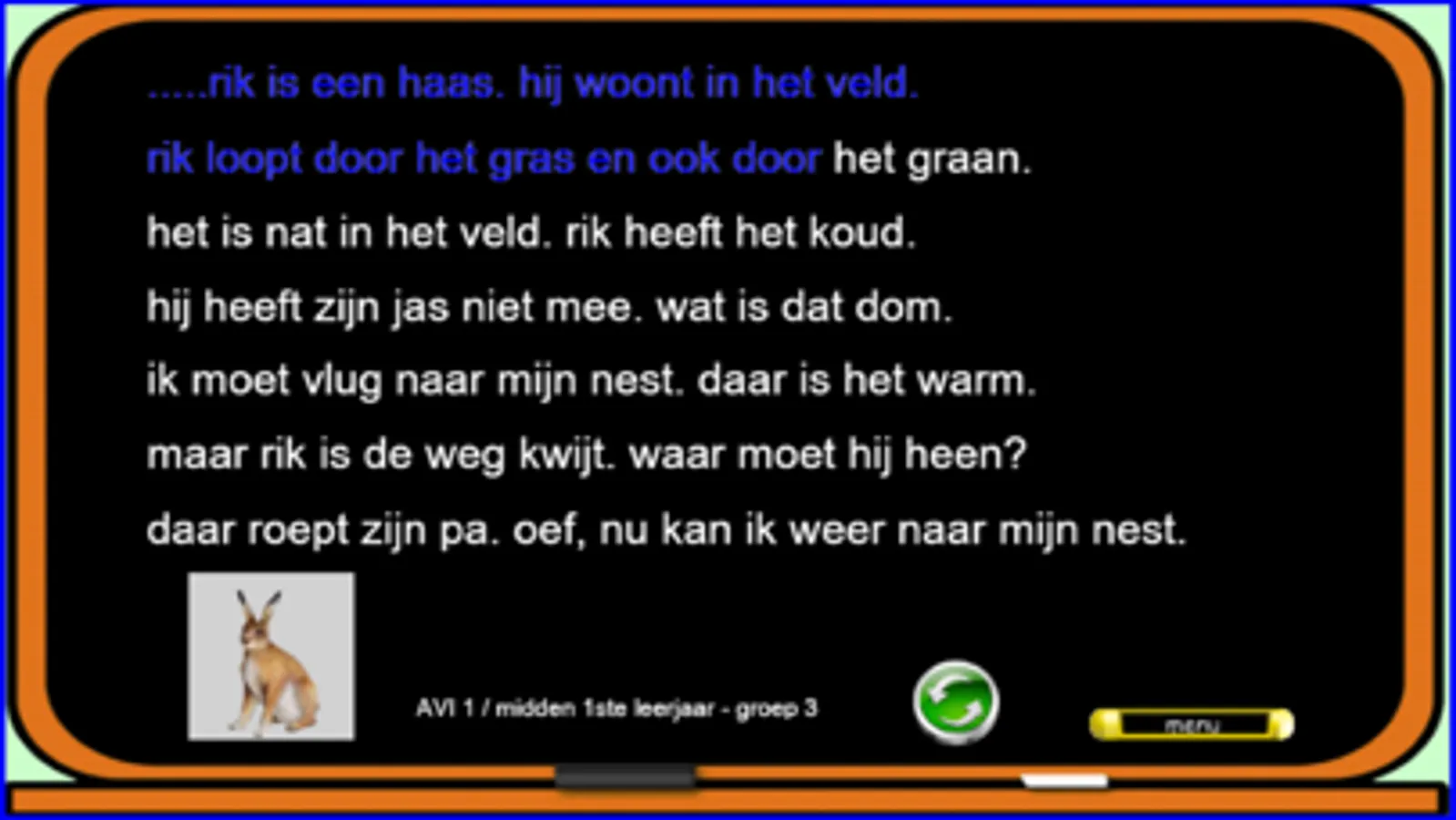 AVI heeft te maken met technisch lezen. Bij technisch lezen gaat het om de techniek van het lezen: kan een kind snel en zonder fouten een tekst lezen? Kinderen die snel en (bijna) foutloos kunnen lezen, hebben een hoog AVI-niveau. Kinderen die nog niet snel kunnen lezen, of die daarbij veel fouten maken, hebben een lager AVI-niveau. Er zijn twaalf AVI-niveaus. Het laagste AVI-niveau is Start. Dat is het niveau van kinderen die nét begonnen zijn met lezen. Het hoogste AVI-niveau is Plus. Dat is het niveau van kinderen die snel en zonder fouten een lastige tekst kunnen lezen. Tussen AVI-Start en AVI-Plus liggen tien AVI-niveaus: M3, E3, M4, E4, M5, E5, M6, E6, M7 en E7. 'M' betekent 'midden' en 'E' betekent 'eind'. De cijfers 3 tot en met 7 geven aan in welke groep dat niveau gemiddeld bereikt wordt. In België komt groep 3 overeen met 1ste leerjaar. Volgens mijn 25-jarige ervaring in het 1ste leerjaar zou ik de volgende tijdstippen aan de niveaus koppelen. AVI S3 = midden 1ste leerjaar; M3 = einde 1ste; E3 = nov. 2de; M4 = midden 2de; E4 = eind 2de. Een goede technische leesvaardigheid is een essentiële voorwaarde voor begrijpend lezen. Bij deze korte teksten is er een kleurindicator die ongeveer de gewenste leessnelheid suggereert. Het is geenszins de bedoeling om kinderen af te schrikken bij het oefenen. Dus op voorhand de kinderen verwittigen dat die kleurindicator niet zo belangrijk is. Belangrijker is het foutloos lezen. Billiau Danny