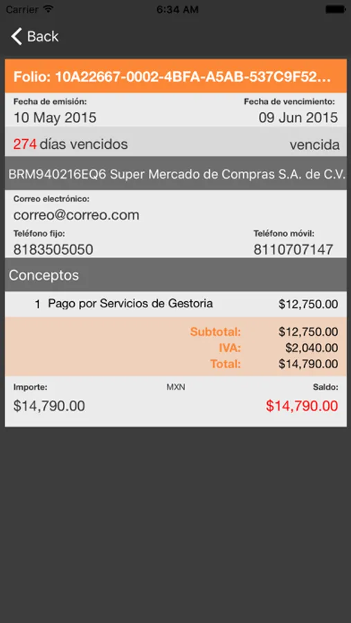 * Listado de todas tus facturas o dividido por su estado de cobranza