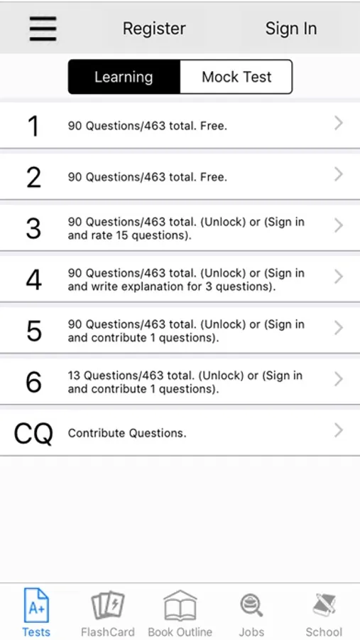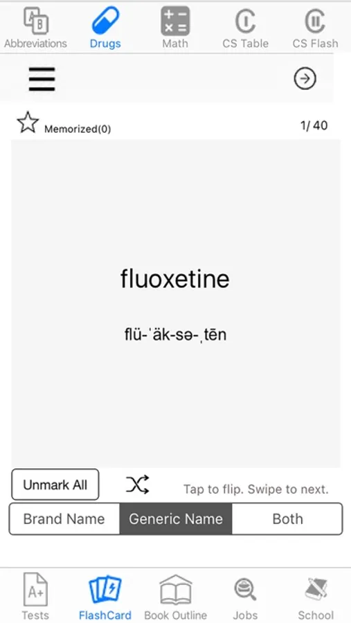 This app is built for people who want to take the PTCB exam. It includes the following sections: Tests(Mock Test and Learning mode), Book Outline, Flash Cards, Jobs and Schools. The Tests section includes around 500 questions with explanations, user's rating, percentage of user's answer, and user's comment. Tests Section has two modes, mock exam mode and learning mode. Flash Card includes Drugs, Abbreviations, Controlled Drugs and Pharmacy Math. The Book Outline section includes important parts of 16 chapters. From School section you can find some online school information. The Jobs section gathers other job hunting websites pharmacy technician or other jobs.