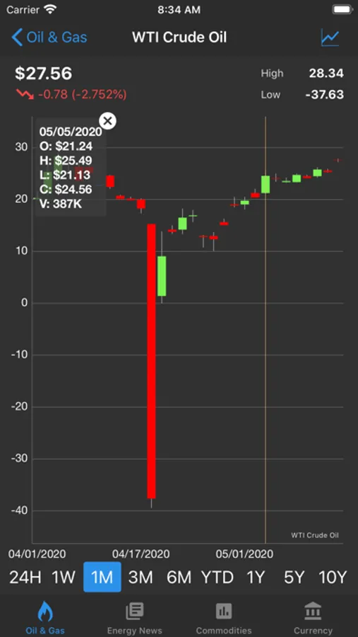 - Interactive Charts in portrait and landscape mode with zoom, range from: last 24 hours, 7 days, 1 - 6 months, 1 - 10 years.