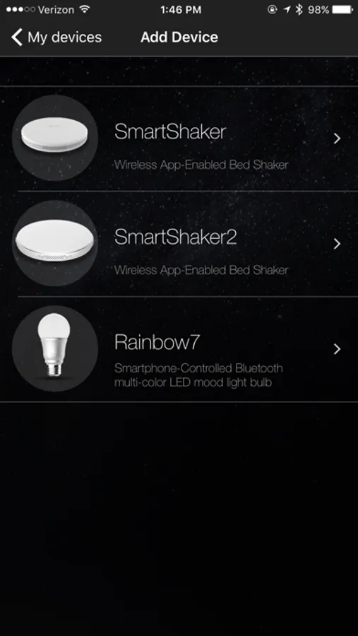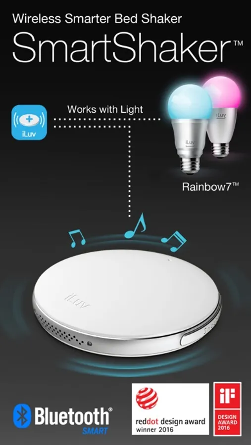 SmartShaker+ is an application to control Smart devices by iLuv such as SmartShaker and Rainbow7 (sold separately). SmartShaker is a Wireless App-Enabled Bed Shaker. Rainbow7 is a Wireless App-Enabled multi-color Smart LED Light Bulb.