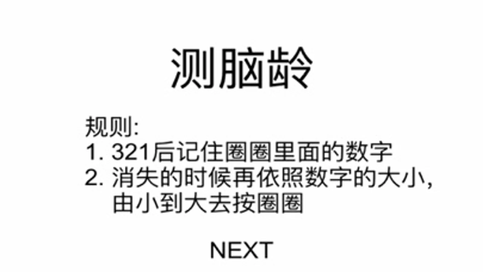 操作方法:规则,在倒计时3、2、1时观察数字,记住它们,再按照从小到大的顺序点击。