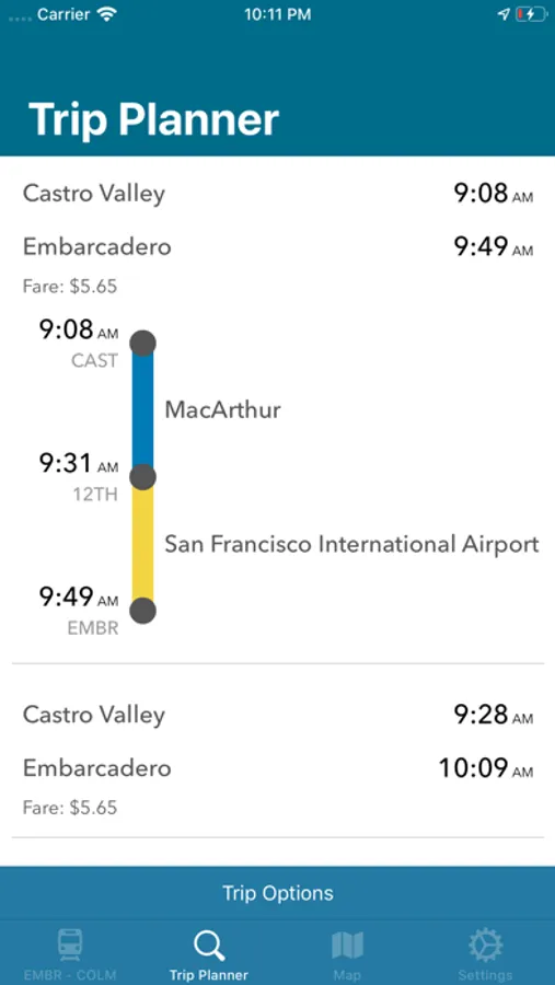 My BART Commute gives you real time train arrivals for your daily commute. Depending on if it is morning or evening you will get the times for just the trains you need to get from your origin station to your destination station. You can also view all the trains, or just the northbound/southbound trains arriving at any station. Check train estimates on your Apple Watch, or with Siri!