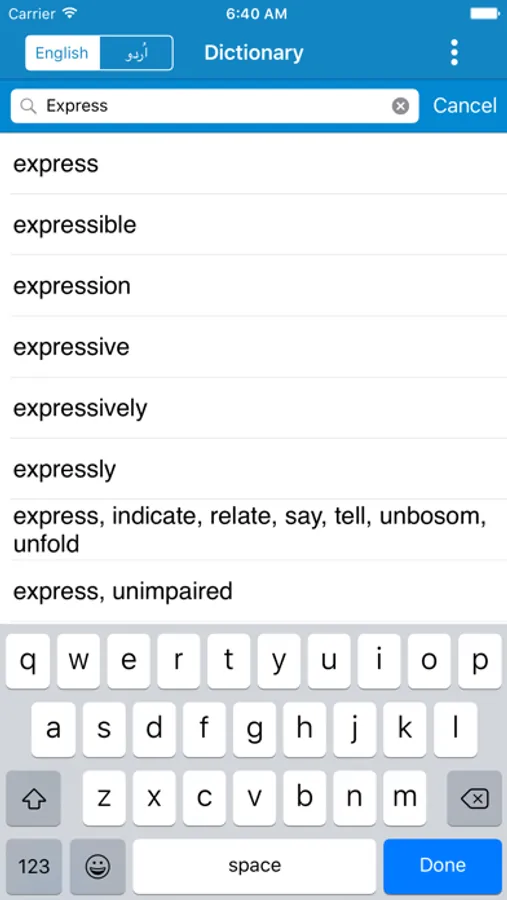 ▩ English to Urdu – In addition to giving meanings from Urdu to English, the app also gives the default and common functionality of English to Urdu words meanings. Therefore, those who want to find the meanings in conventional way can find urdu meanings of English words in this dictionary.