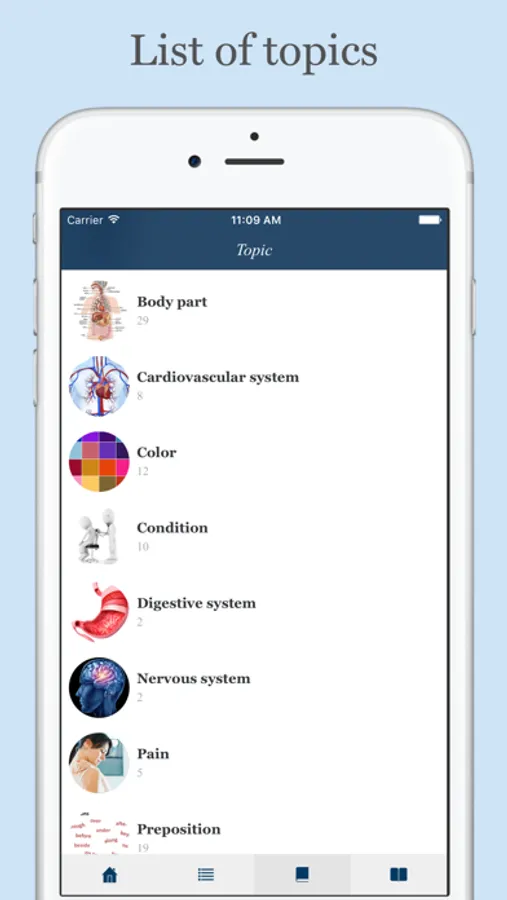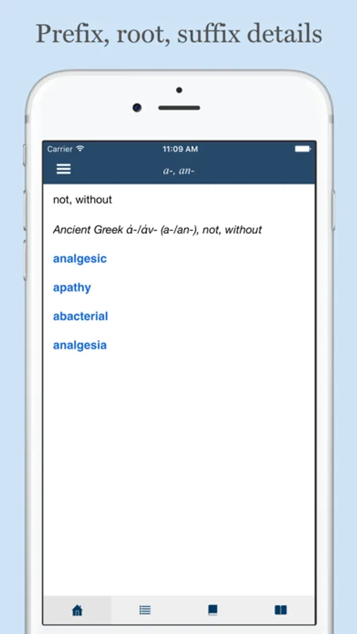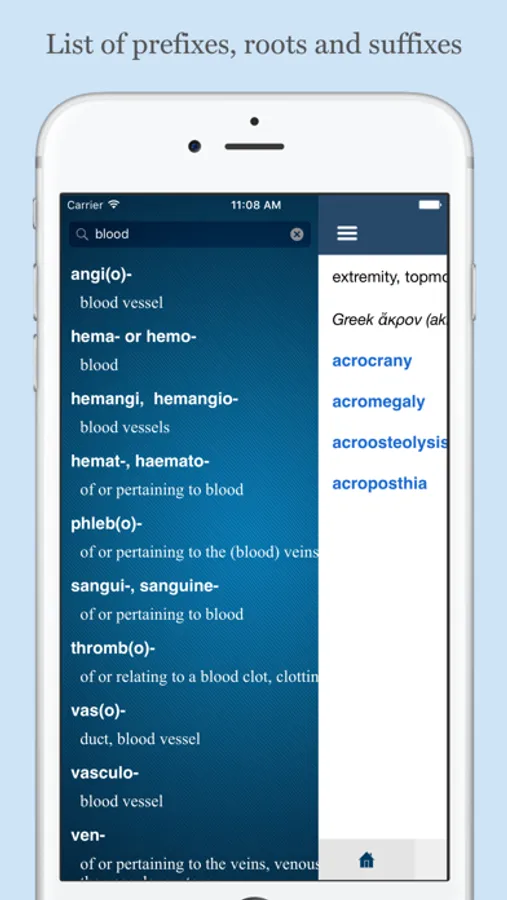 This app is designed to help you to learn a list of prefixes, roots, suffixes used in medical terminology, their meanings, and their etymology. Most of prefixes, roots, suffixes are derived from ancient Greek or classical Latin. Using this app will help you to easily remember medical terms.