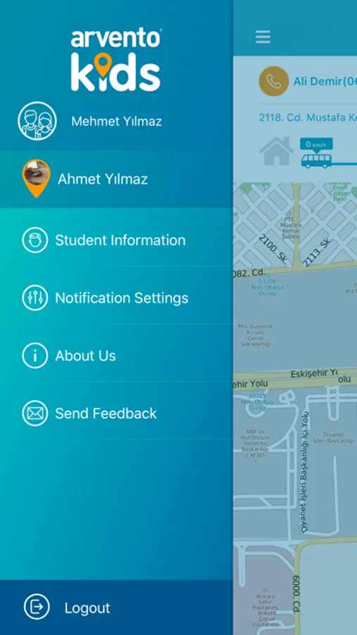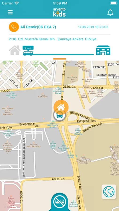 By means of Arvento Kids application, no matter where you are, you can easily keep track of your students using the student shuttles with "Arvento Student Tracking System" through your mobile phone.