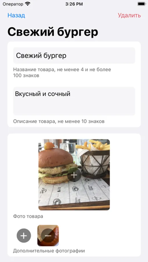 Можно отредактировать название, описание, основное фото (и дополнительные изображения), установить скидку, выбрать категорию товара и переместить его в нужные подборки.