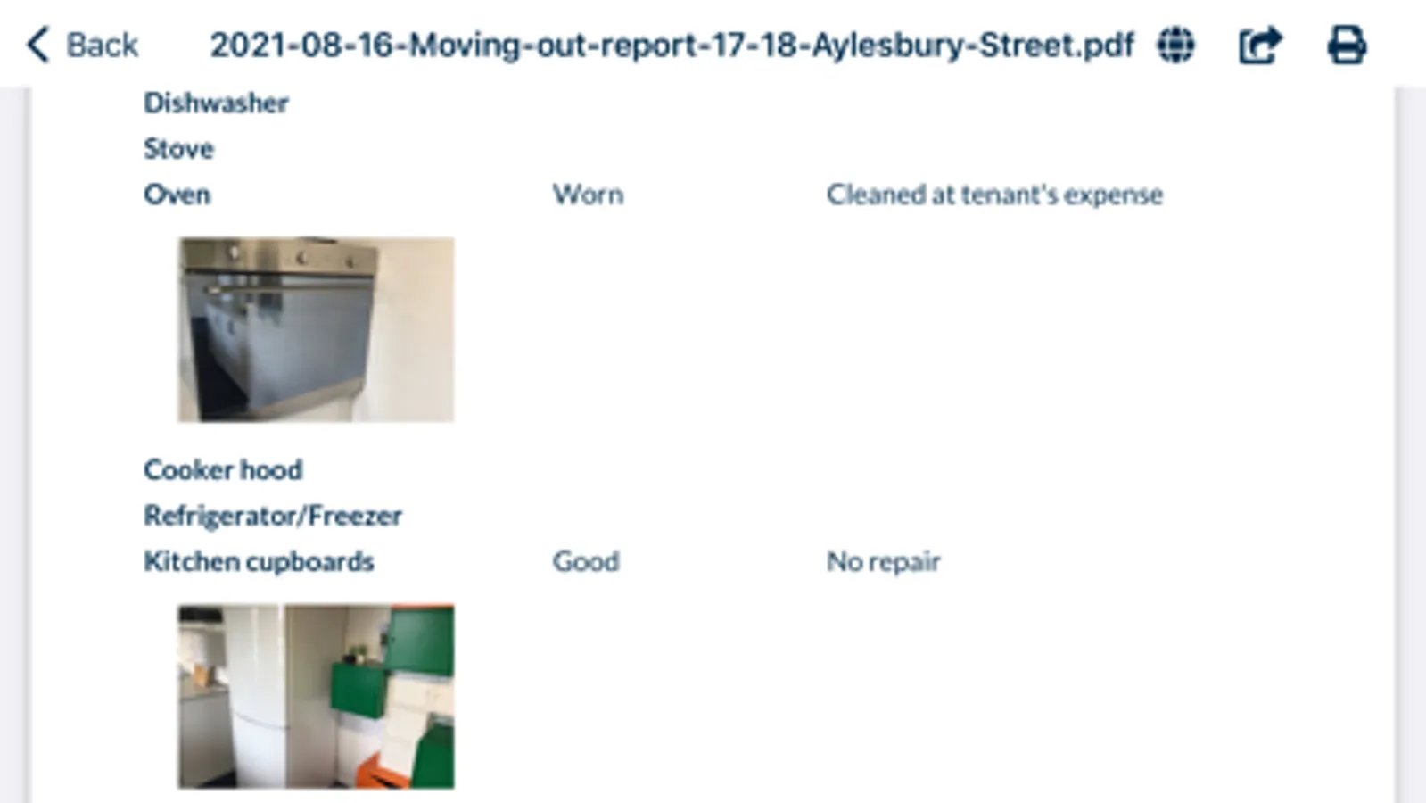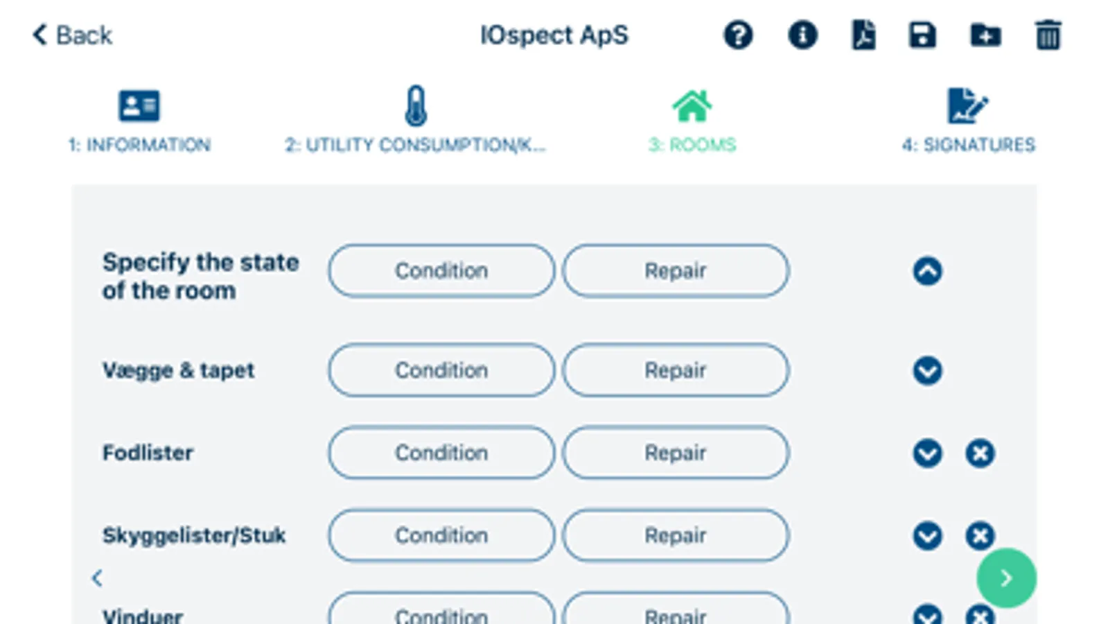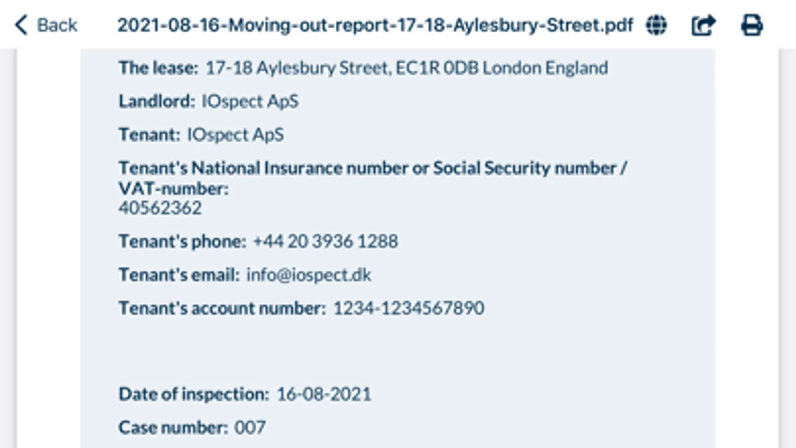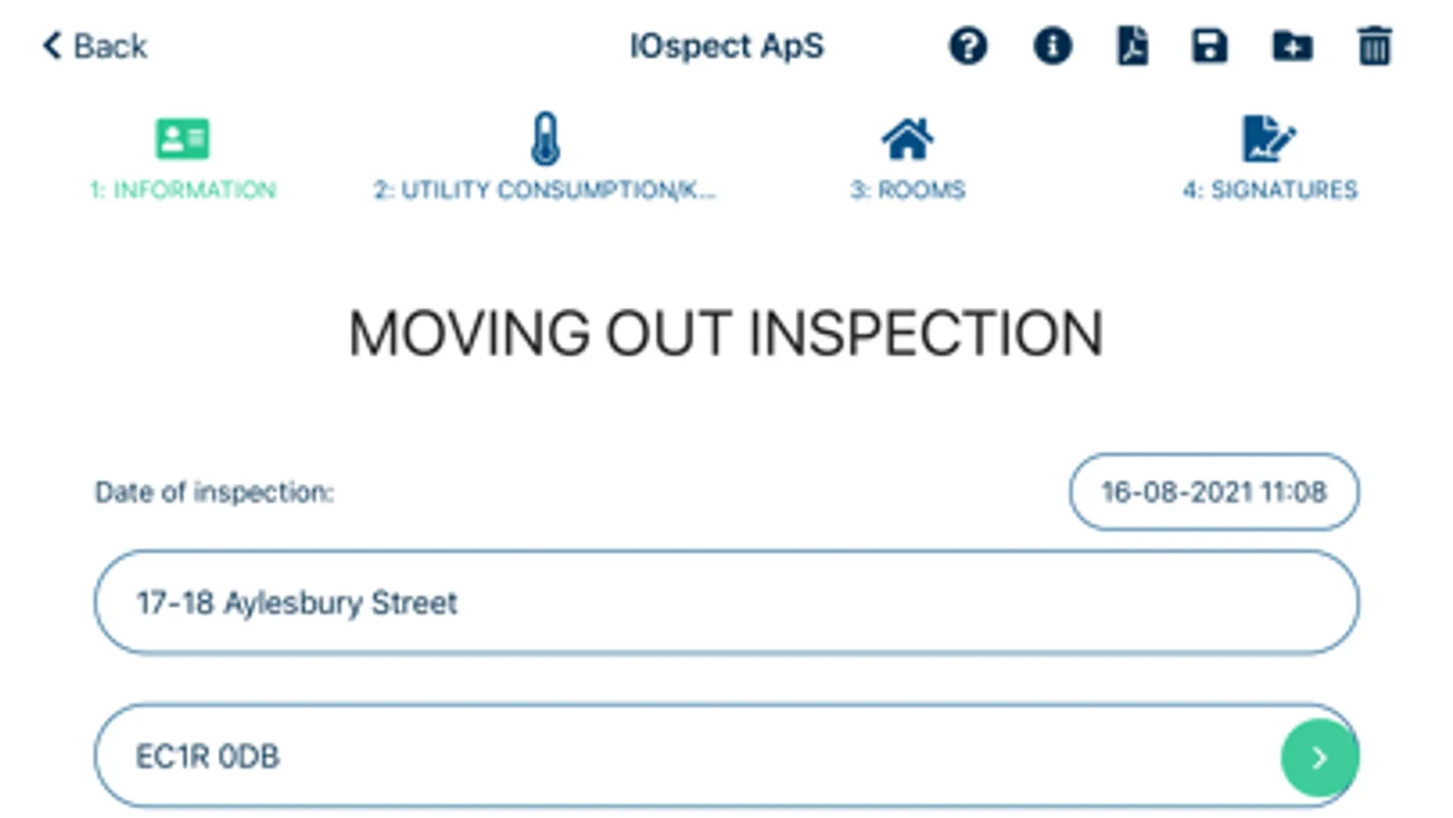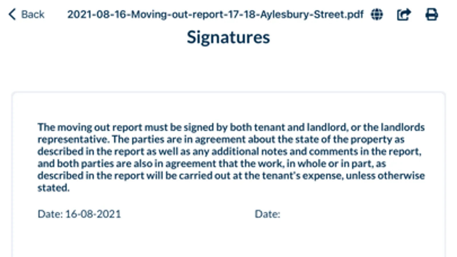 Once you have checked and documented everything, the moving in/out report is ready - you and the tenant can sign directly on the iPad and you can email the report to the tenant, your own administration, or e.g. cleaning people if necessary - all of it directly from the app.