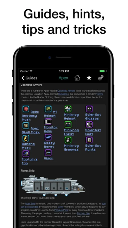 Looking for help or the latest tips for the game Starbound? This all-in-one solution is exactly what you need: everything for the good game and improving your gaming skills. This app will be useful for both novice and experienced players. No ads! Does not require an internet connection to use, so that any relevant information is always available to you. This app is unofficial.