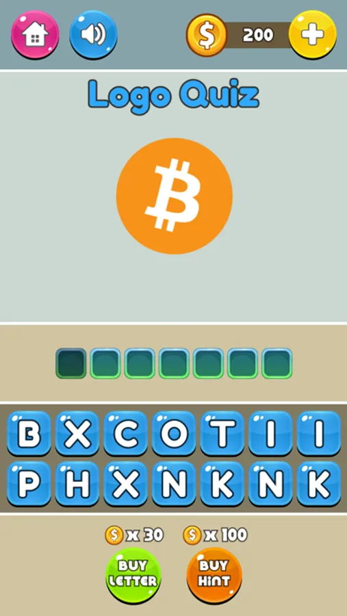 Earn coins for each correct answer and then use your coins to buy letters and hints.