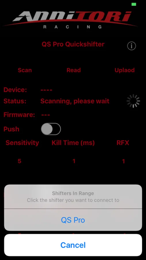 4) If a QS Pro shifter is on and in range you will see a list appear on screen.