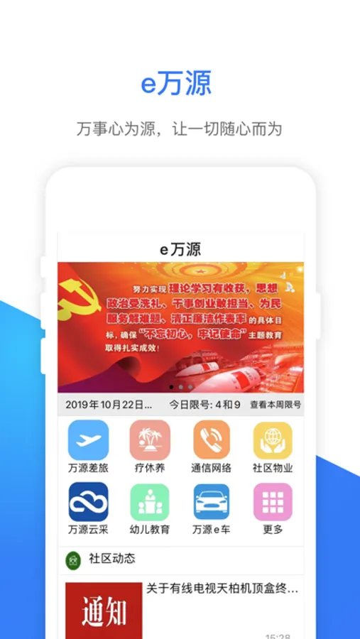 e万源自助服务系统是一款由航天万源实业公司开发,基于互联网+理念,以便民业务为主,逐步拓展到智慧社区业务的一个平台。通过微信公众号、掌上APP、网上营业厅的推出,无论在何处,用户只要有网就可以实现应用平台系统的功能:便民服务,家政服务,家长控制,租房信息等服务。