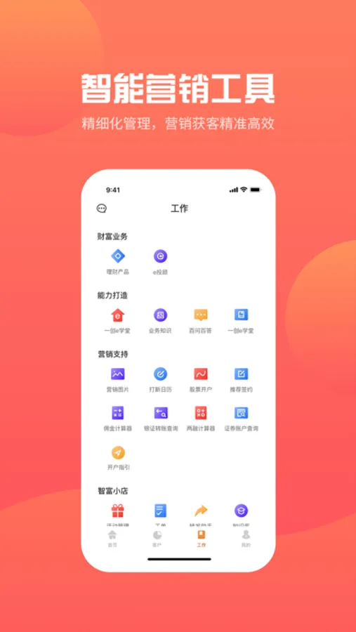 一键导入通讯录好友到潜在客户列表,全面支持证券经纪人、投资顾问等对客户进行分类及动态管理。客户信息全景视图,自动跟踪客户生日、账户动态等,关键时刻不再错过。