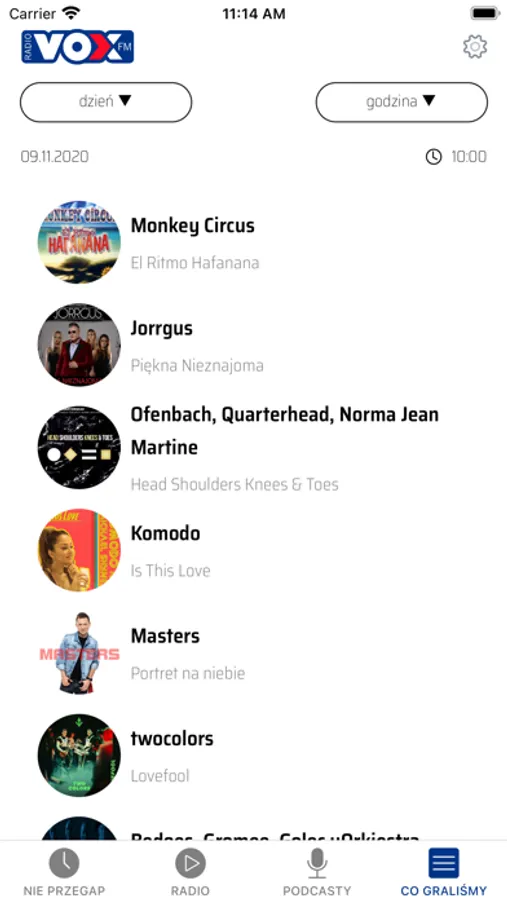 - możesz sprawdzić co było grane na antenie w wybranej godzinie
