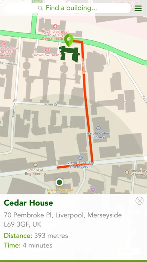 Need to find your way across campus in a hurry? Use the University of Liverpool's Campus Map app to quickly look up buildings and access point-to-point directions from your location to the building of your choice.