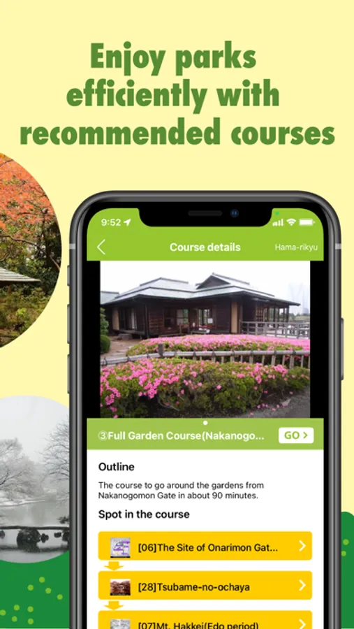 ・Seasonal sights such as cherry blossoms are introduced for Hama Rikyu Gardens and Rikugien Gardens.