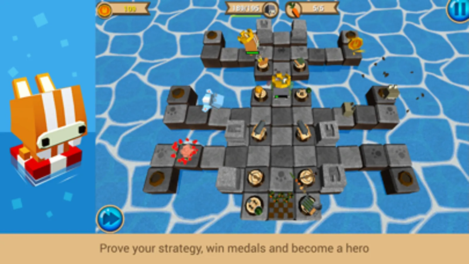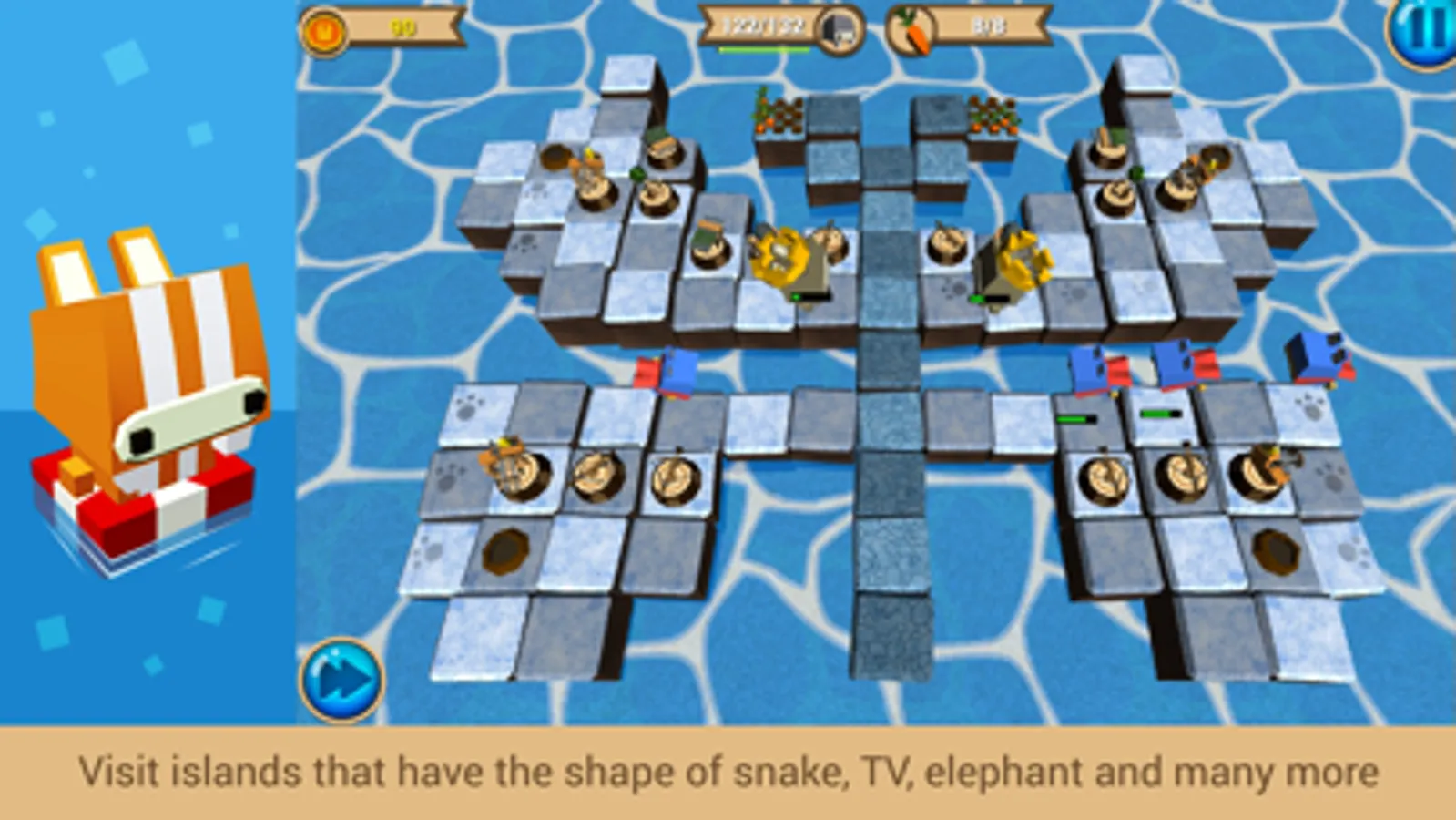 We invite you to join a trip to little islands of jolly forms. We will be thankful to you, the great strategist, if you help us to get rid of gluttonous rabbits. Our resources of carrots and flowers are drying up. You will get access to our best towers, the ones that shoot with popcorn, potatoes and watermelons. A scarecrow and a hand organ also ready to slow down the enemies.