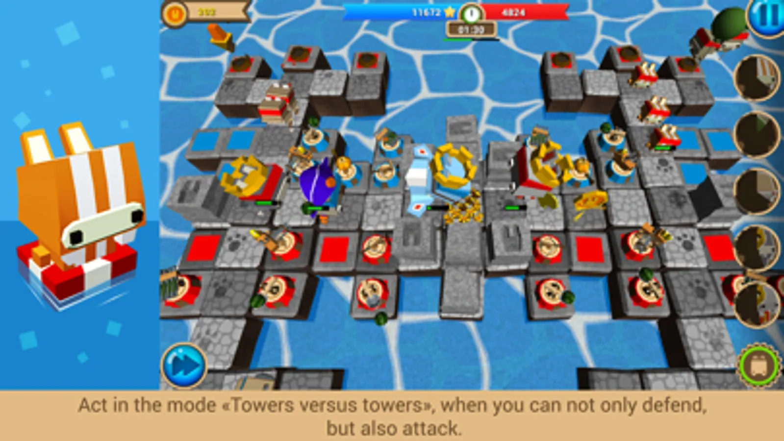 - Act in the mode "Towers versus towers", when you can not only defend, but also attack.