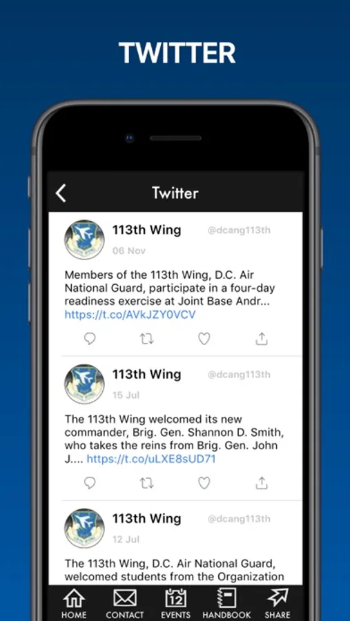 The 113th Wing is the air component of the District of Columbia National Guard. As the only federal National Guard unit, its chain of command extends from the President of the United States, through the Secretary of the Army, to the Commanding General, DC National Guard. The 113th Wing is an Air Combat Command-gained unit and is also an Air Mobility Command component. Everything you want to know about the 113th Wing is at your fingertips, and staying up to date with the Capital Guardians is easier and more enjoyable than ever before.