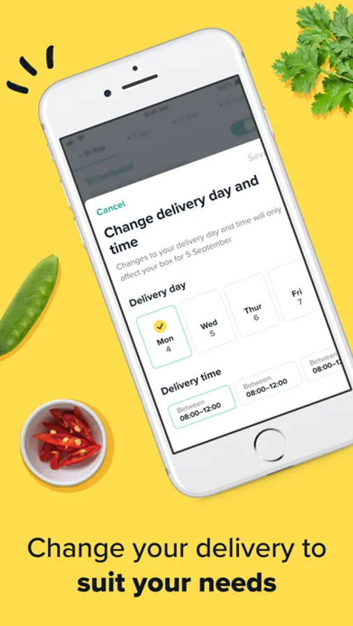 - Manage your account on the go: set your delivery details and plan up to 4 weeks ahead.