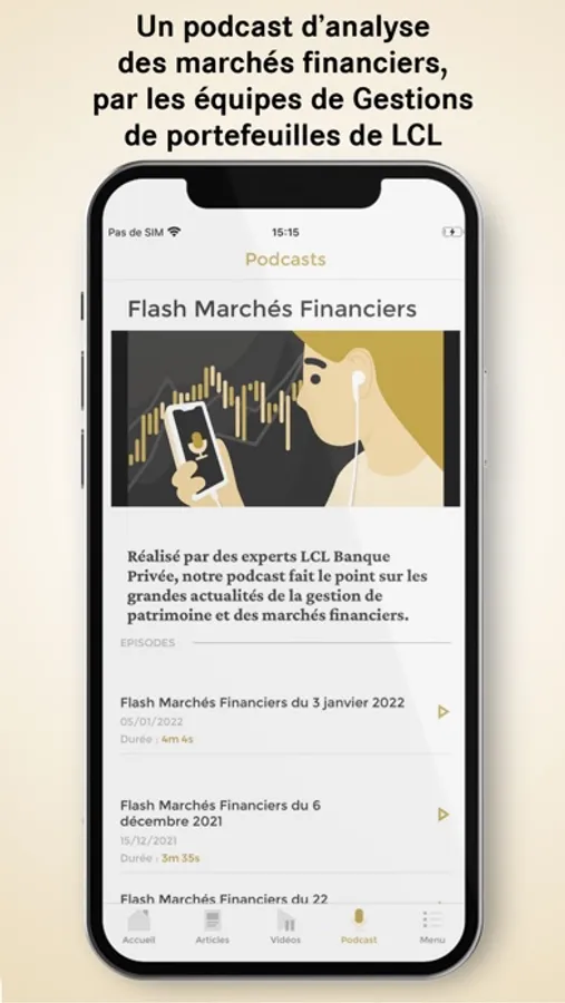 Retrouvez également nos formats dynamiques : des vidéos d’experts décryptant un sujet d’actualité et facilitant ainsi vos décisions patrimoniales, mais aussi un podcast, notamment dédié à l’évolution des marchés financiers et enregistrés par les équipes de gestions de portefeuilles de LCL Banque Privée.