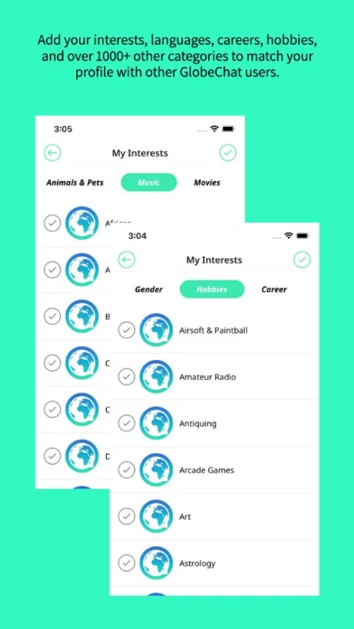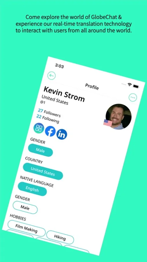 Explore. Meet. Chat. Repeat. GlobeChat instantly translates over 70 languages, allowing you to experience the world like never before. Whether seeing new places on the Global Wall, matching with new friends from across the world, or sliding into someone’s DMs, everything is automatically translated to your native language.